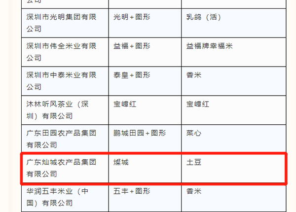 廣東燦城農產品集團有限公司上榜入選2個產品!